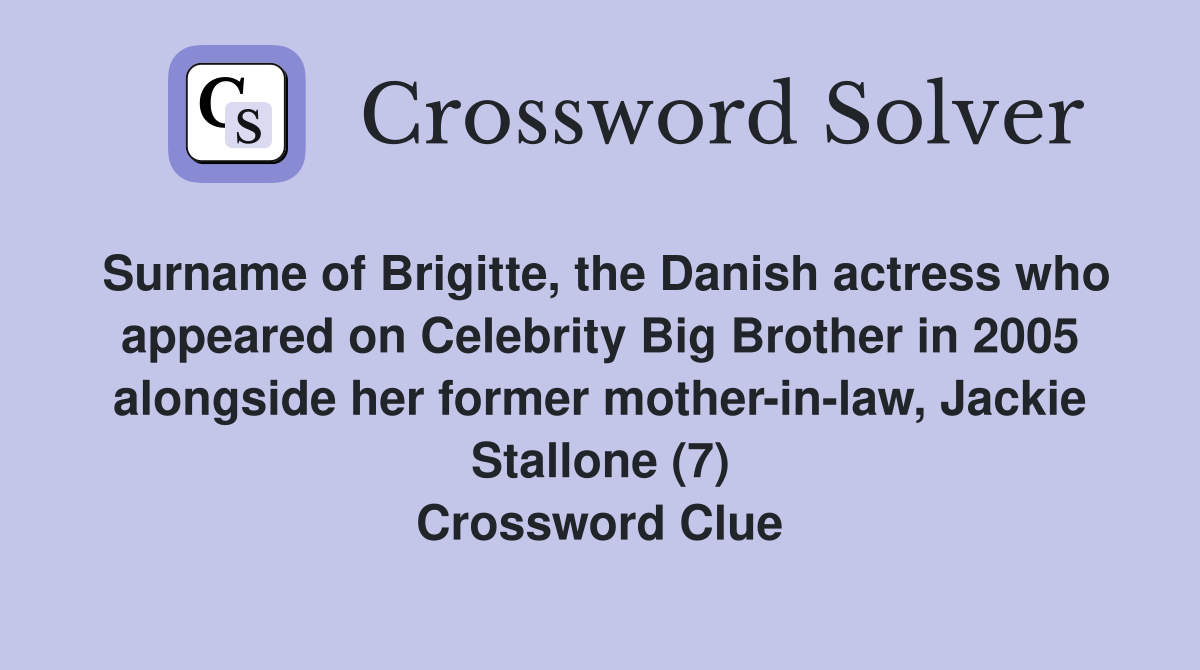 Surname of Brigitte the Danish actress who appeared on Celebrity Big