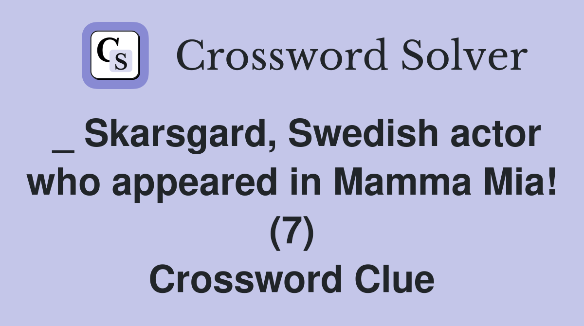 Skarsgard Swedish actor who appeared in Mamma Mia (7) Crossword