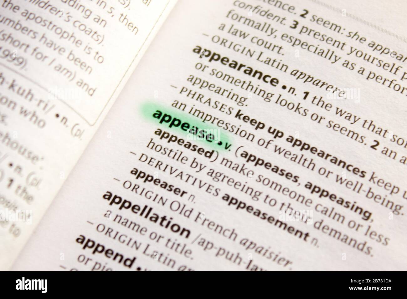 Appease word or phrase in a dictionary Stock Photo Alamy