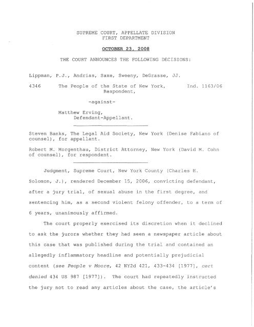 SUPREME COURT APPELLATE DIVISION FIRST
