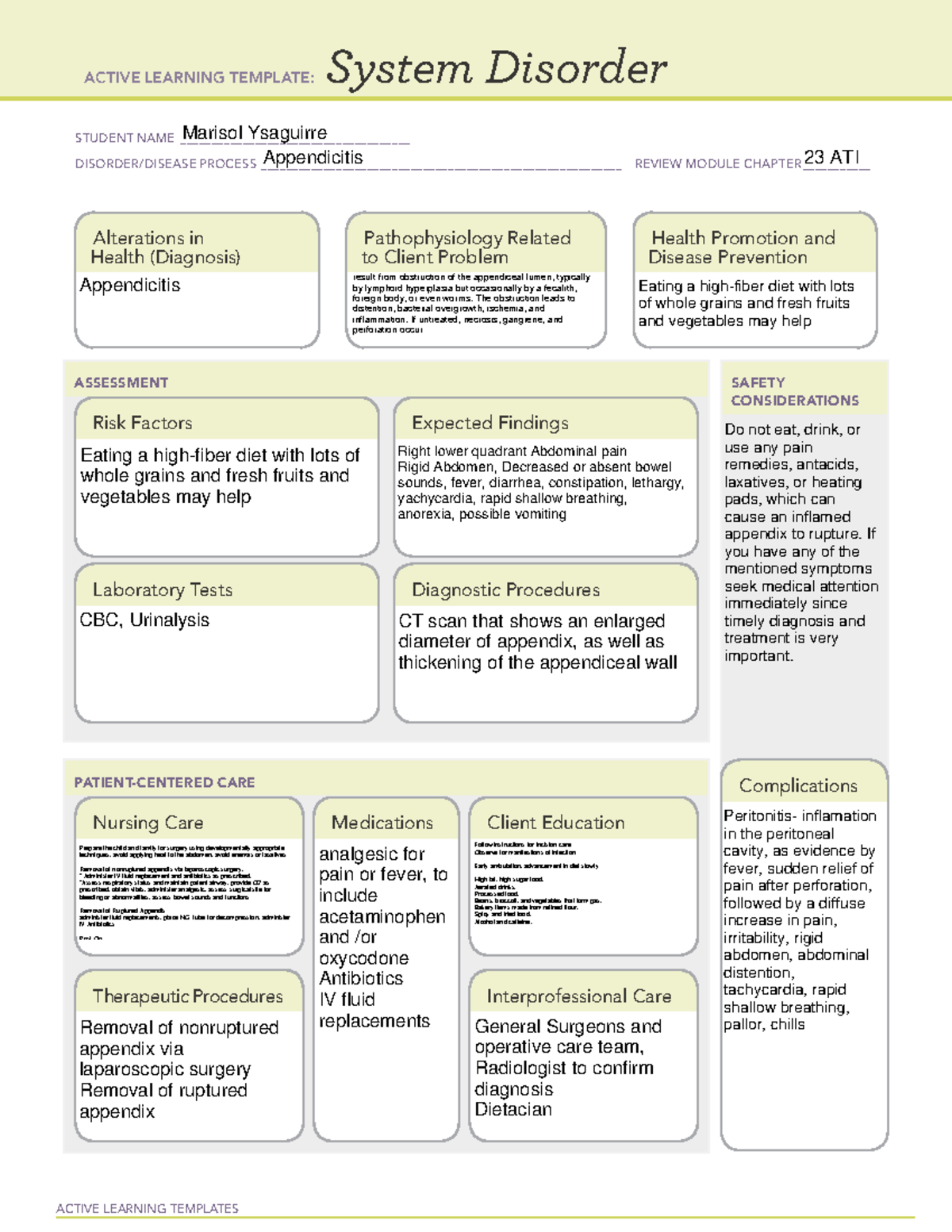 Appendicitis ati template ACTIVE LEARNING TEMPLATE: System Disorder