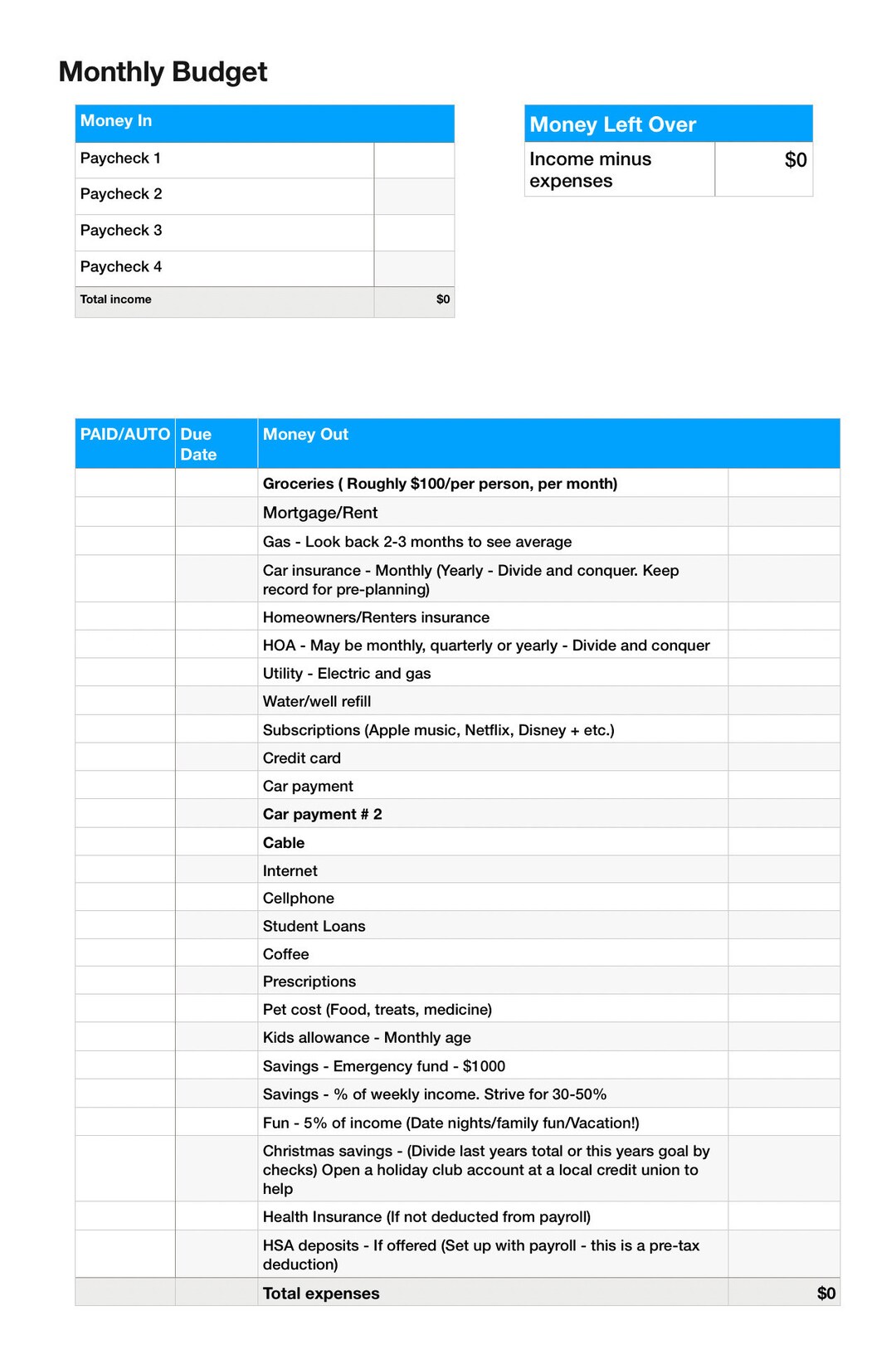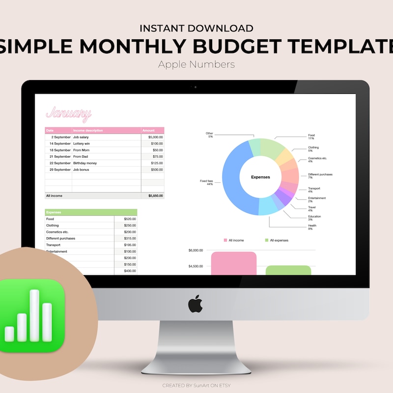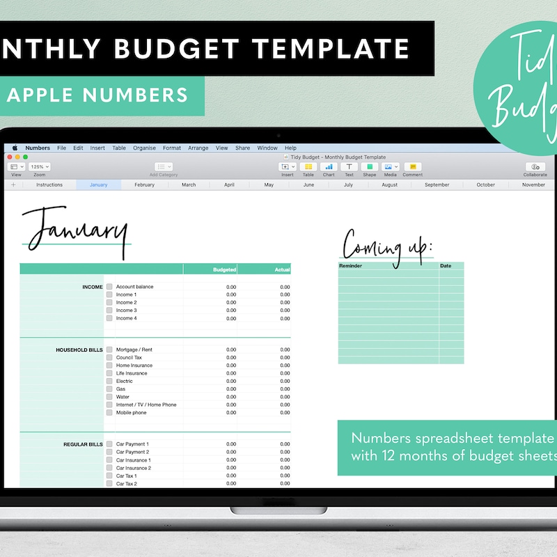 Apple Numbers Monthly Budget Spreadsheet Etsy