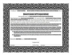 Certificate of Stock Editable Stock Certificate Template Certificate