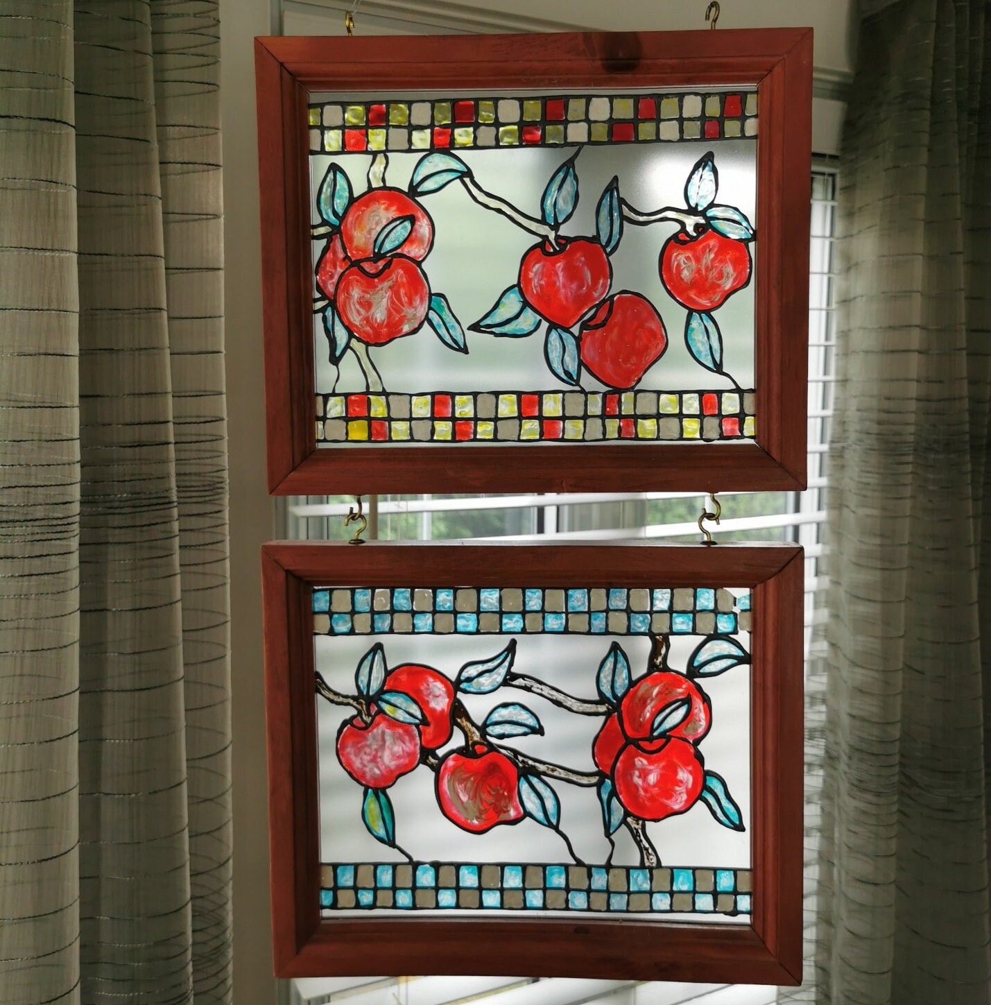 Apples Suncatcher Set of 2 Vintage Stained Glass Framed Panels 16 Etsy