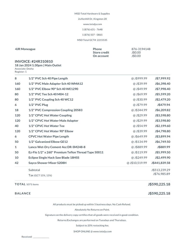 Receipt PDF Pipe (Fluid Conveyance) Home Appliance