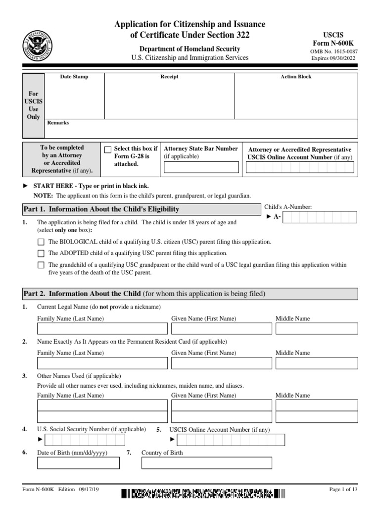 USCIS Form N 600K Fill Out Sign Online and Download Fillable PDF