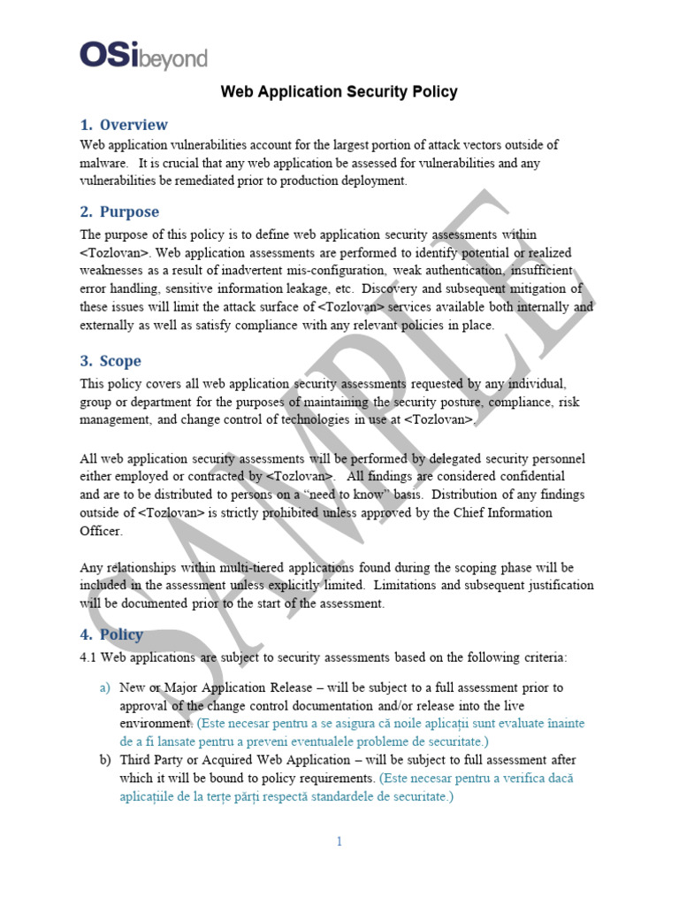 IT Security Policy Template Web Application Security Policy OSIBeyond