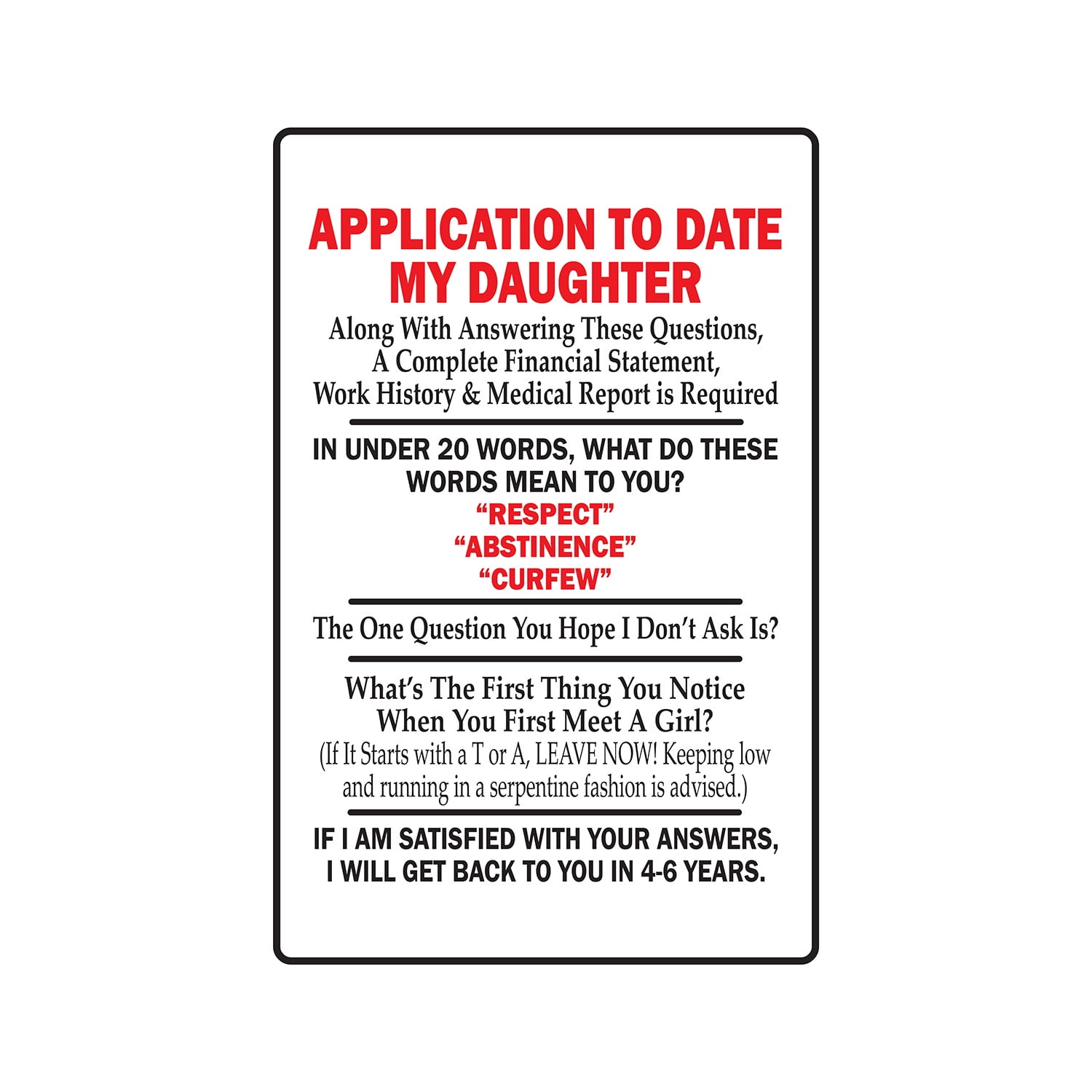APPLICATION TO DATE MY DAUGHTER Sign rules parent girl Indoor/Outdoor