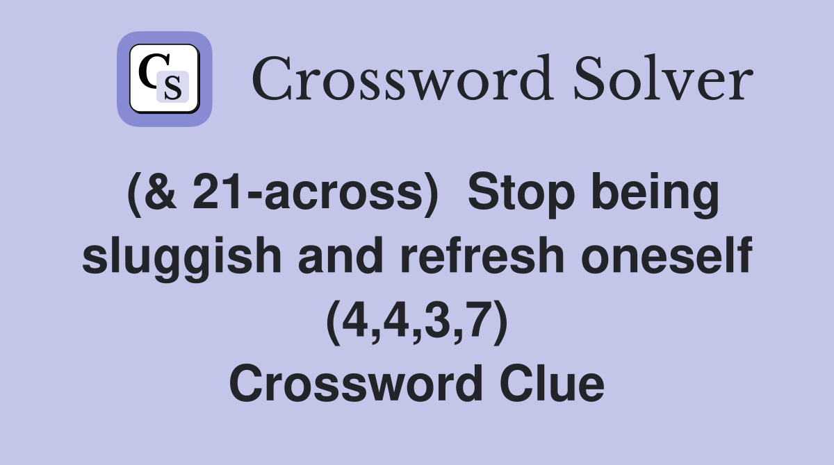 ( 21 across) Stop being sluggish and refresh oneself (4 4 3 7