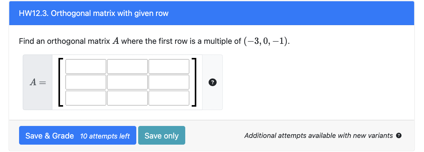 Solved : Find an orthogonal matrix ( A ) where the firs
