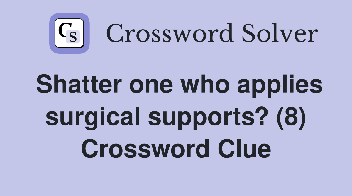 Shatter one who applies surgical supports? (8) Crossword Clue Answers