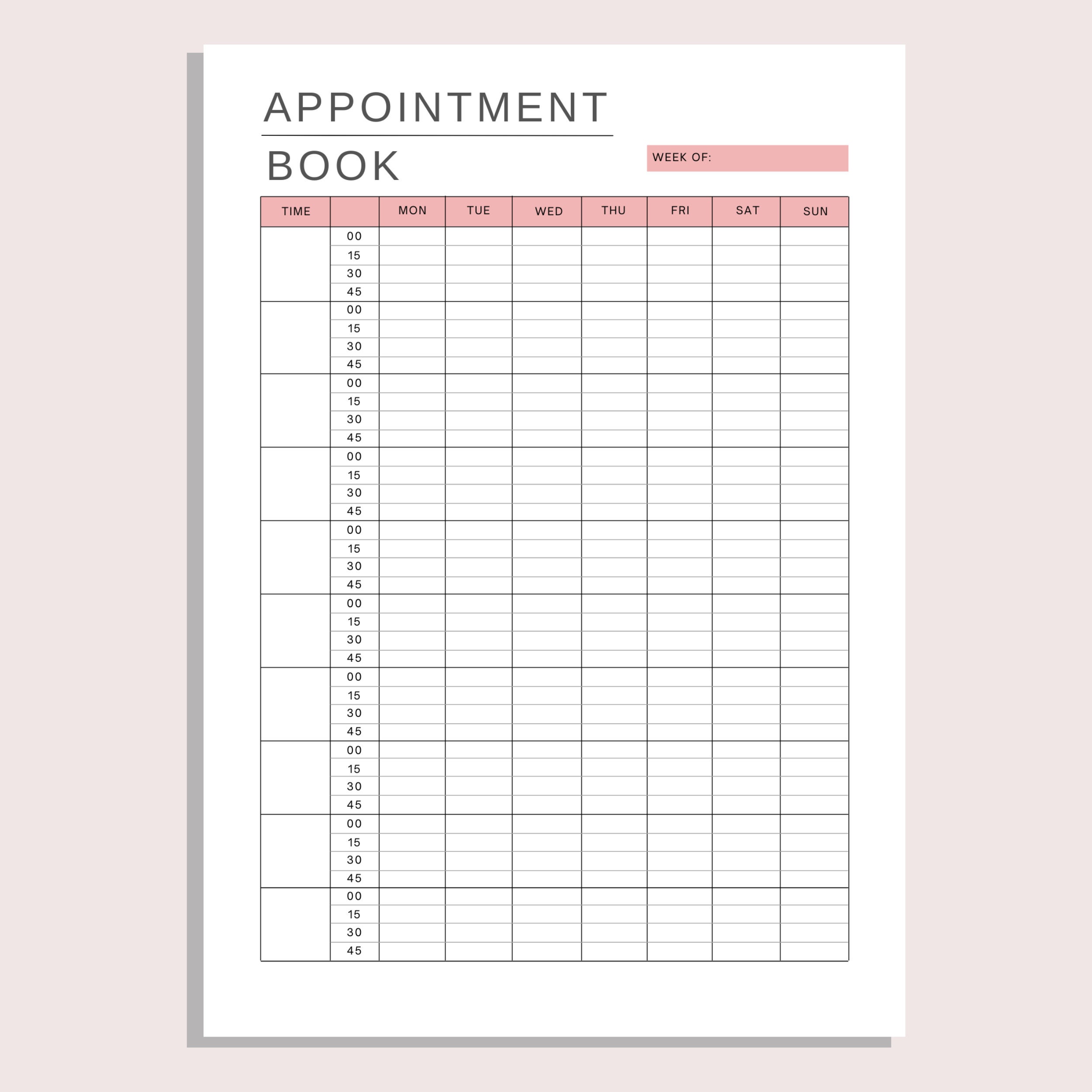 15 Minute Interval Appointment Book Printable Appointment Tracker