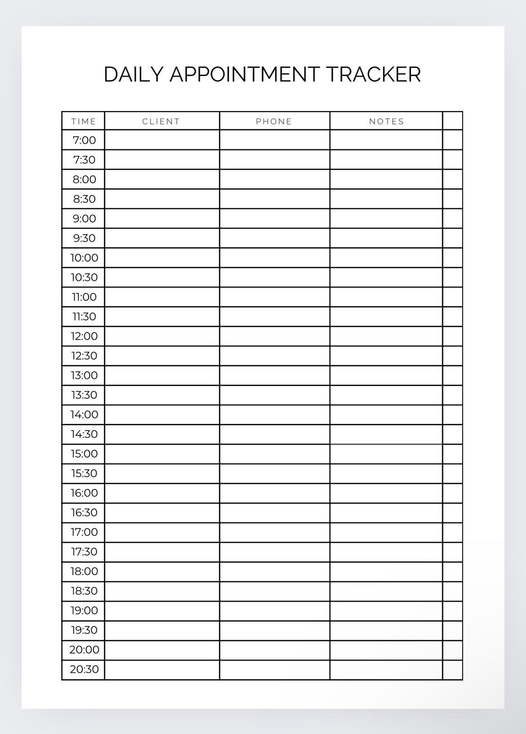 Printable Blank Daily Appointment Sheet Template · InkPx
