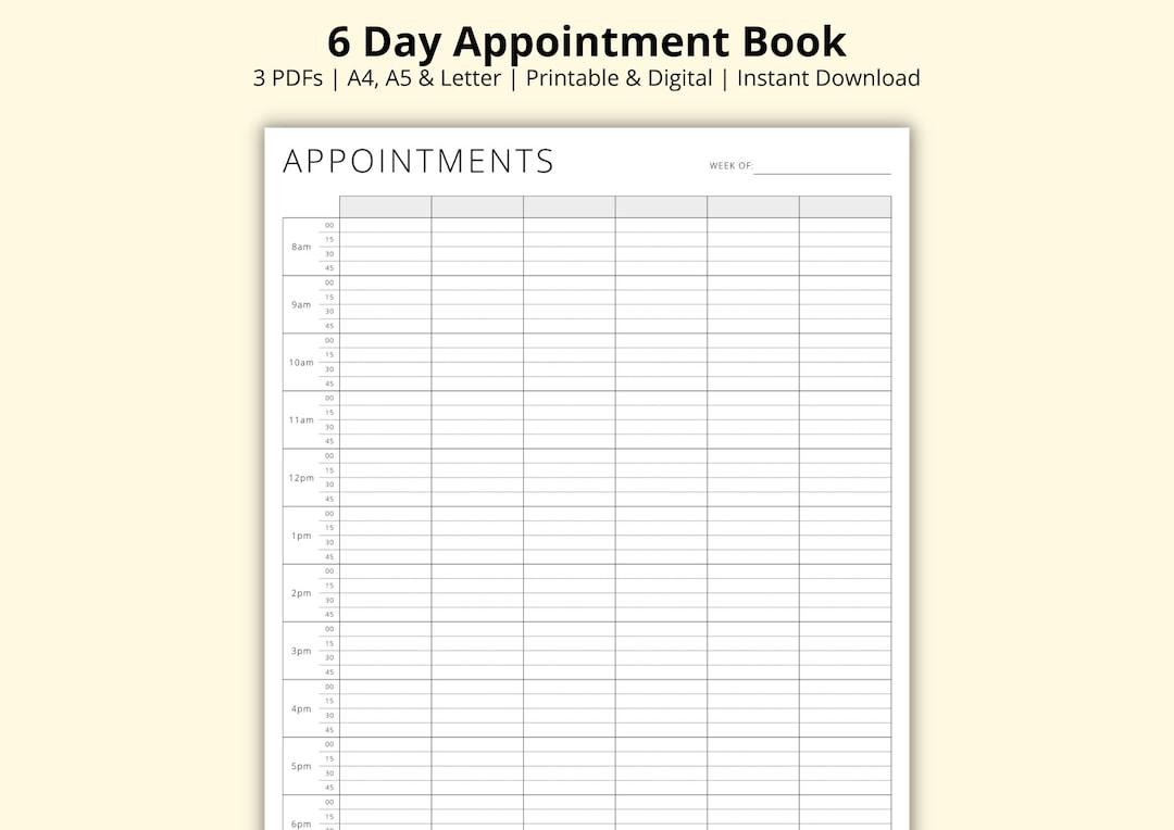 Appointment Planner Printable Template Ready to Upload PDF Commercial