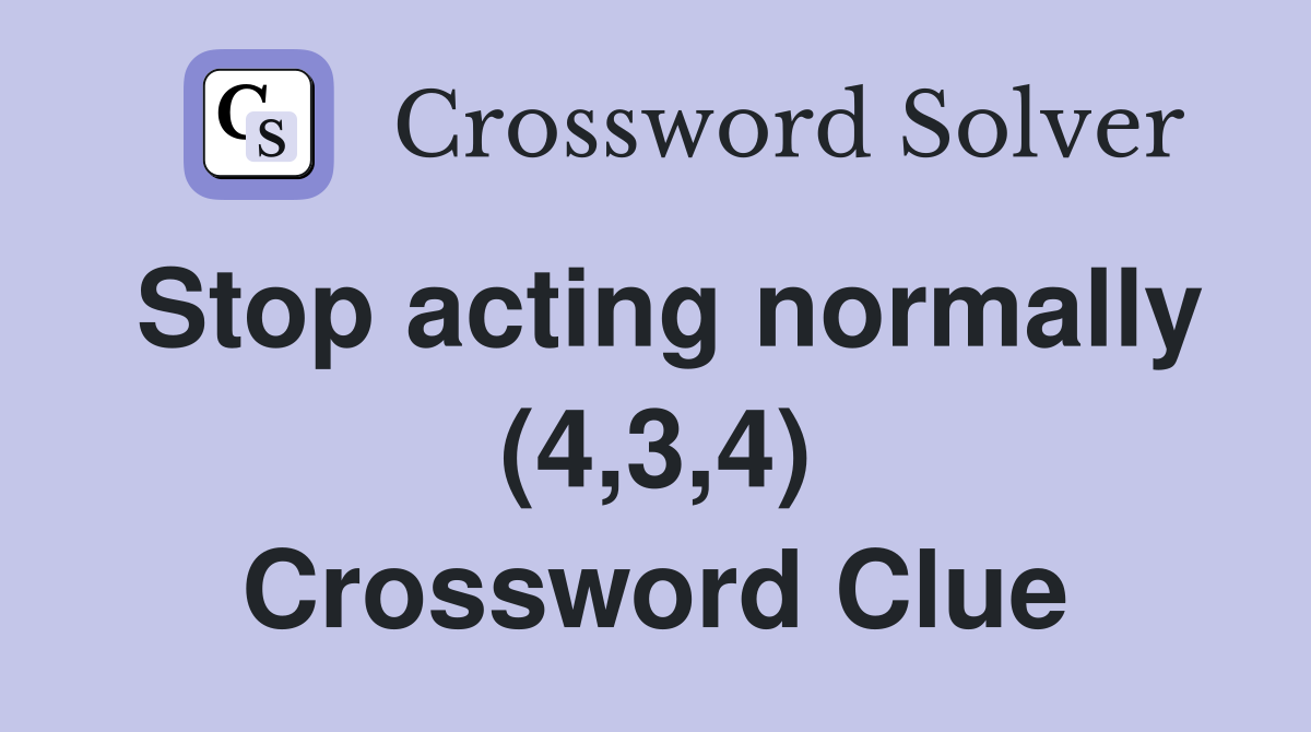 Stop acting normally (4 3 4) Crossword Clue Answers Crossword Solver