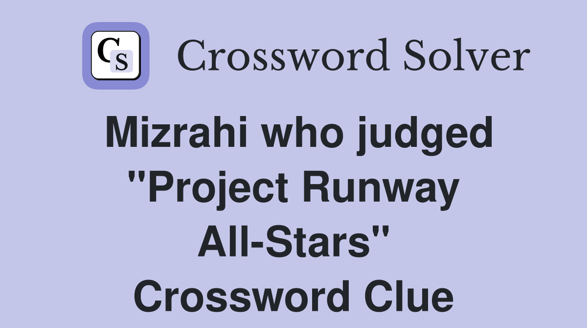 Mizrahi who judged quot Project Runway All Stars quot Crossword Clue Answers