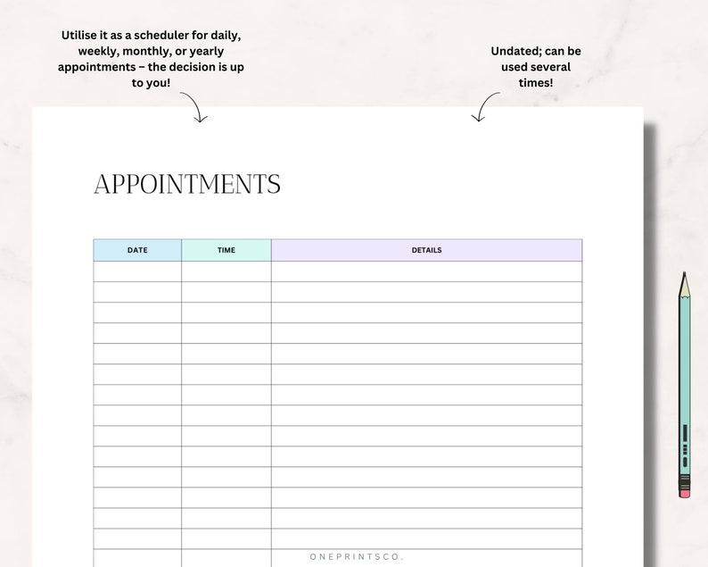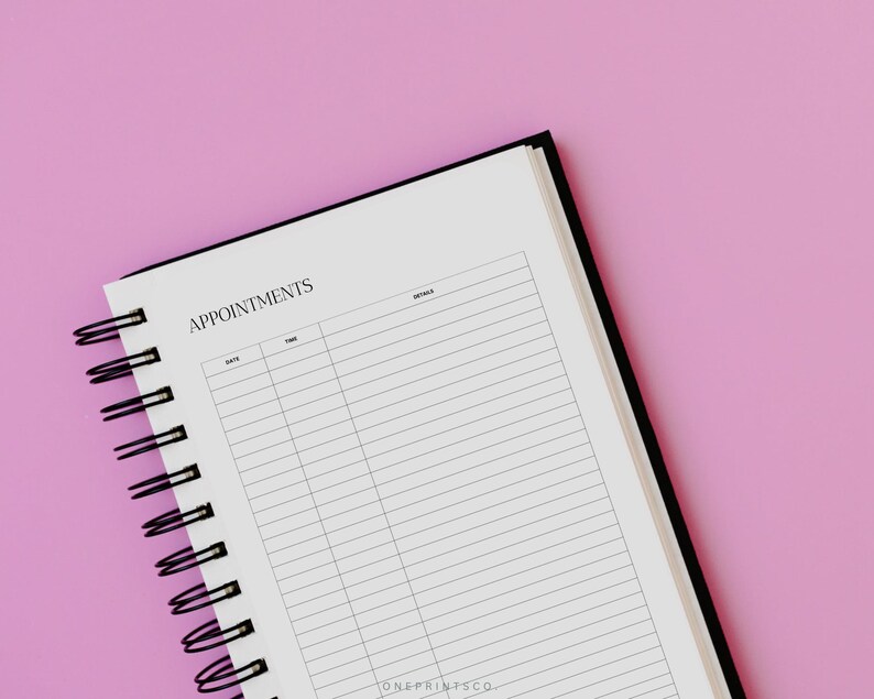 Appointment Tracker Template Printable Appt Reminder Planner Journal