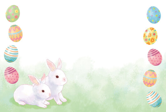 Premium Vector Greeting card with rabbit and easter eggs on a white