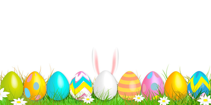 Blue And Green Easter Egg Horizontal Background Illustrations Royalty