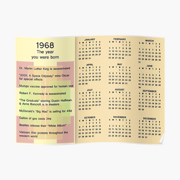 Year 1968 Calendar In English Stock Illustration Download Image Now