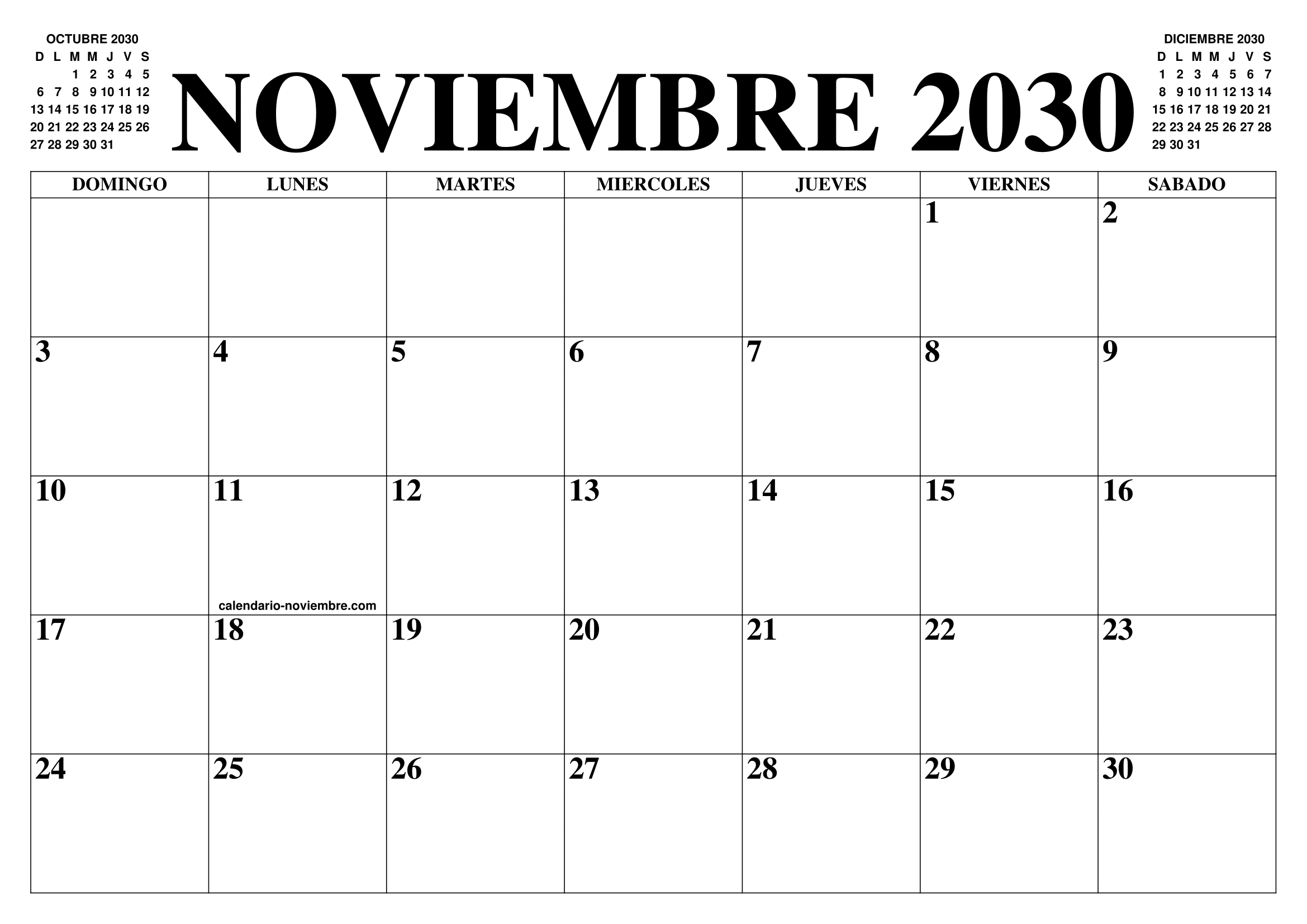 CALENDARIO NOVIEMBRE 2030 : EL CALENDARIO NOVIEMBRE PARA IMPRIMIR