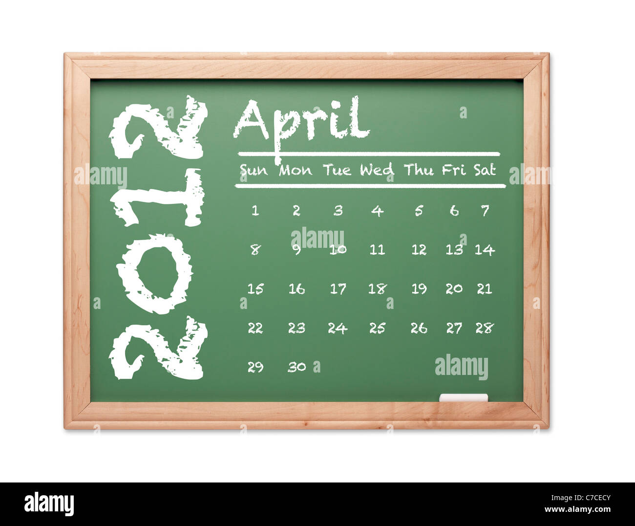 Month of April 2012 Calendar on Green Chalkboard Over White Background