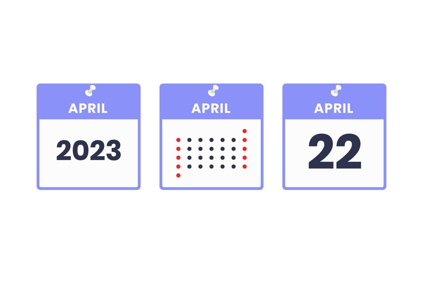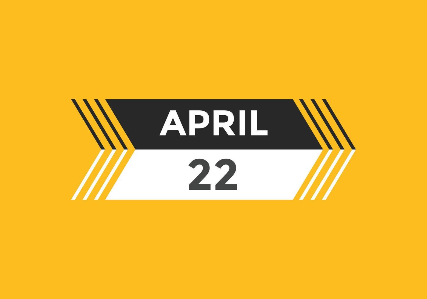22nd April calendar icon April 22 calendar Date Month icon vector