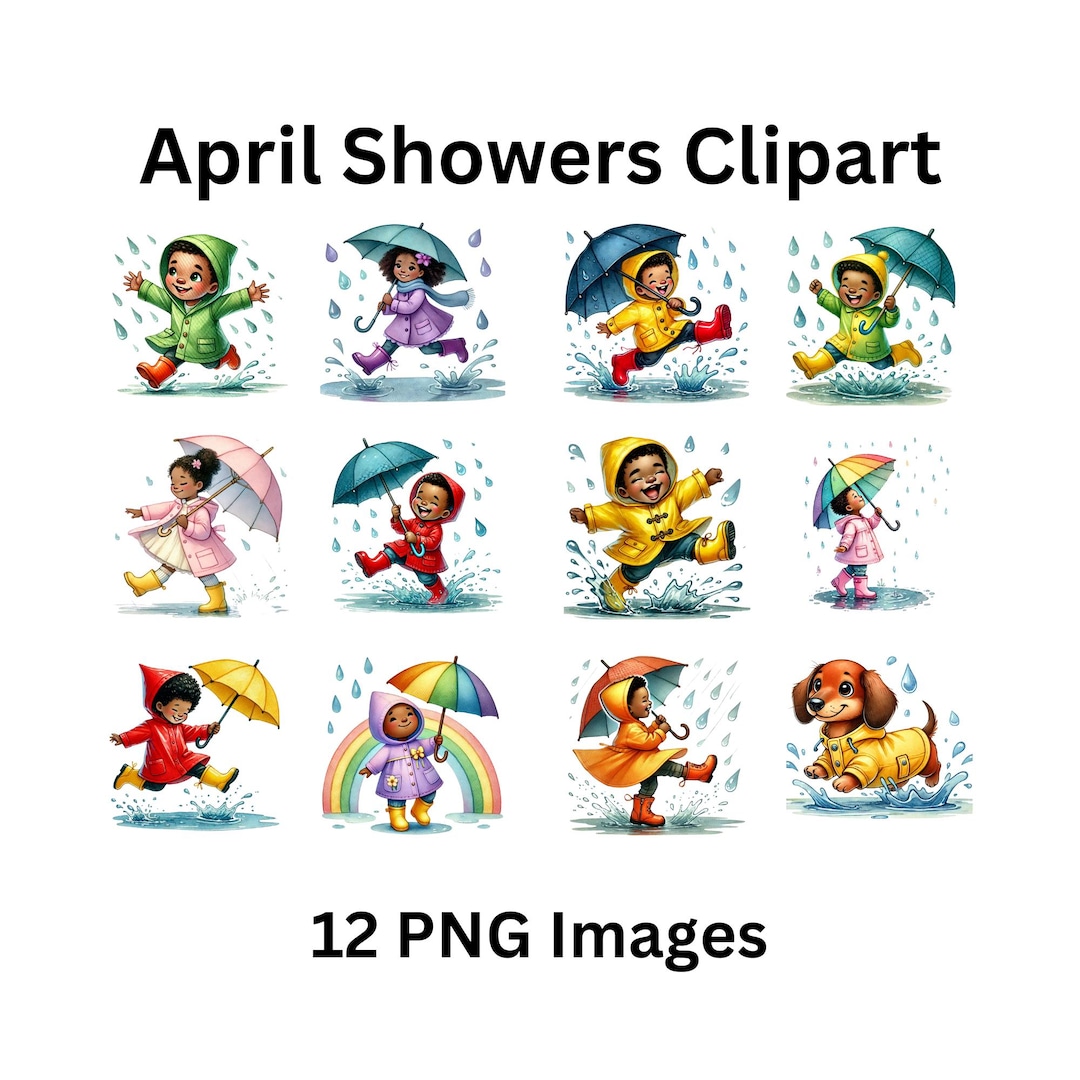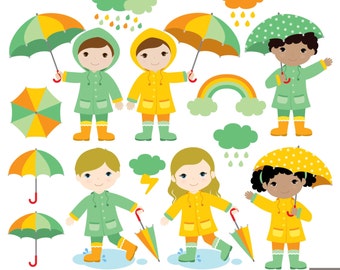 April Showers Cute Clip Art Collection Rain Showers Kids Playing in