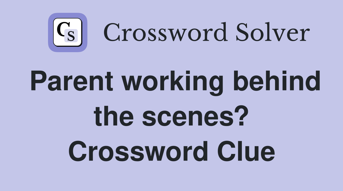 Parent working behind the scenes? Crossword Clue Answers Crossword