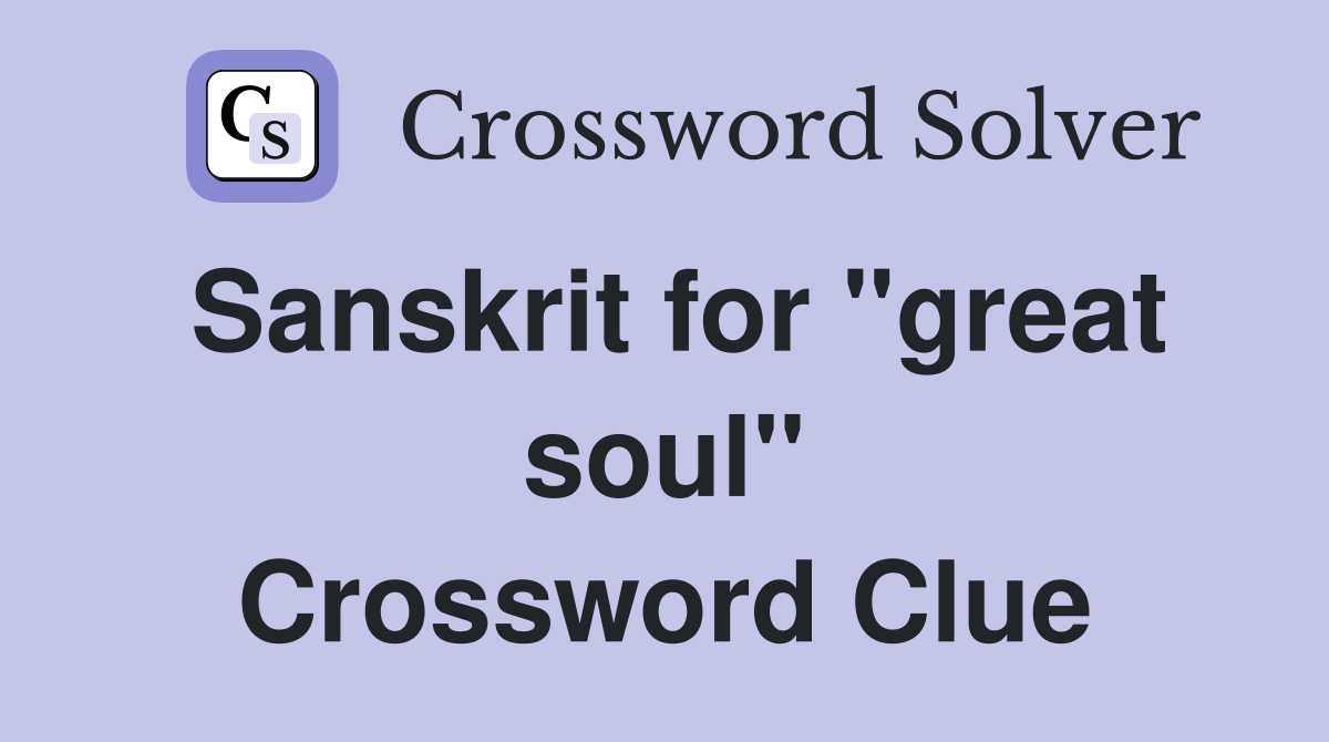 Sanskrit for quot great soul quot Crossword Clue Answers Crossword Solver