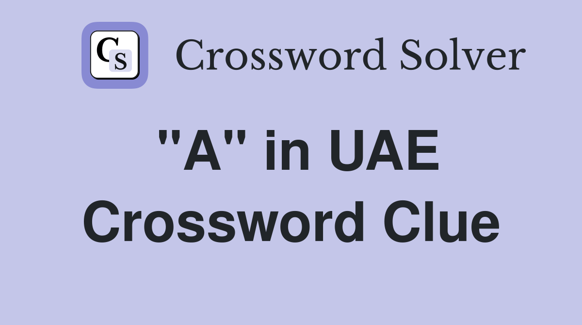 quot A quot in UAE Crossword Clue Answers Crossword Solver