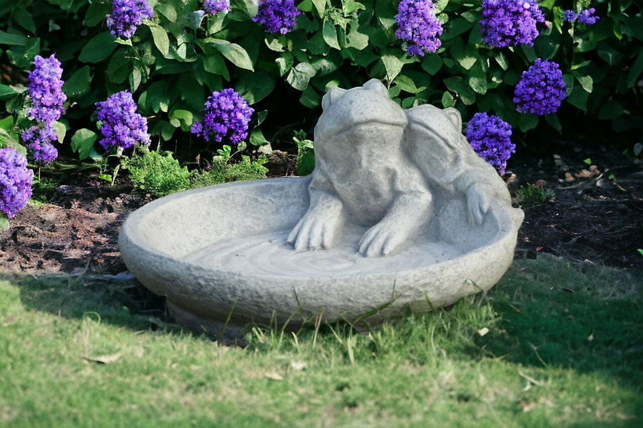 Concrete Pot Statue Birds Bath Two Frogs on Plate Sculpture Cement
