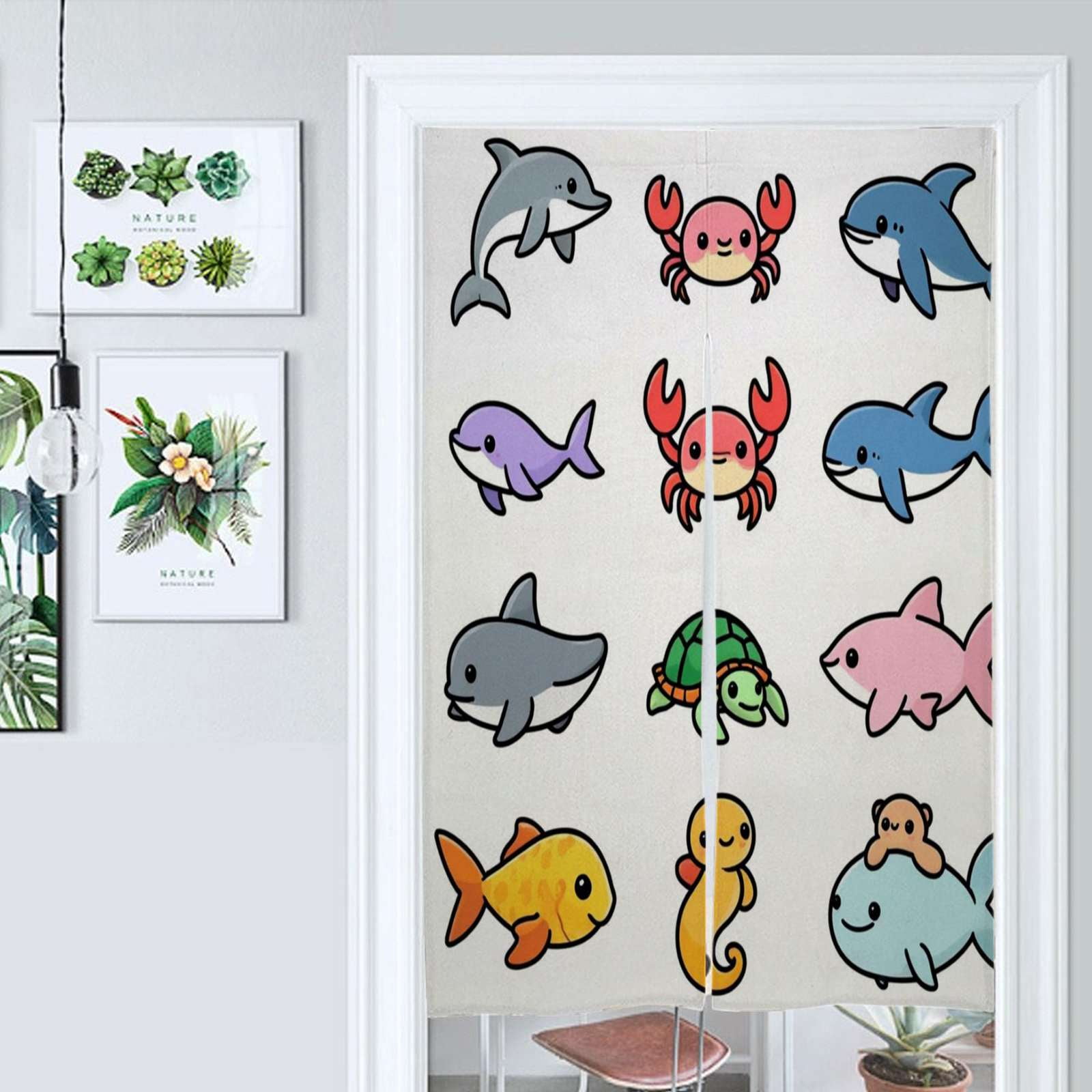 Cute Aquatic Animals Door Curtain Nordic Living Room DoorCurtain Porch