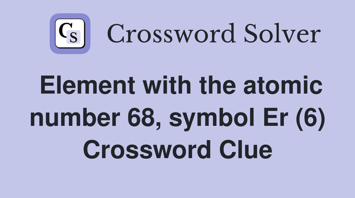 Element with the atomic number 68 symbol Er (6) Crossword Clue