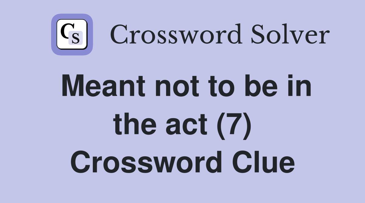 Meant not to be in the act (7) Crossword Clue Answers Crossword Solver