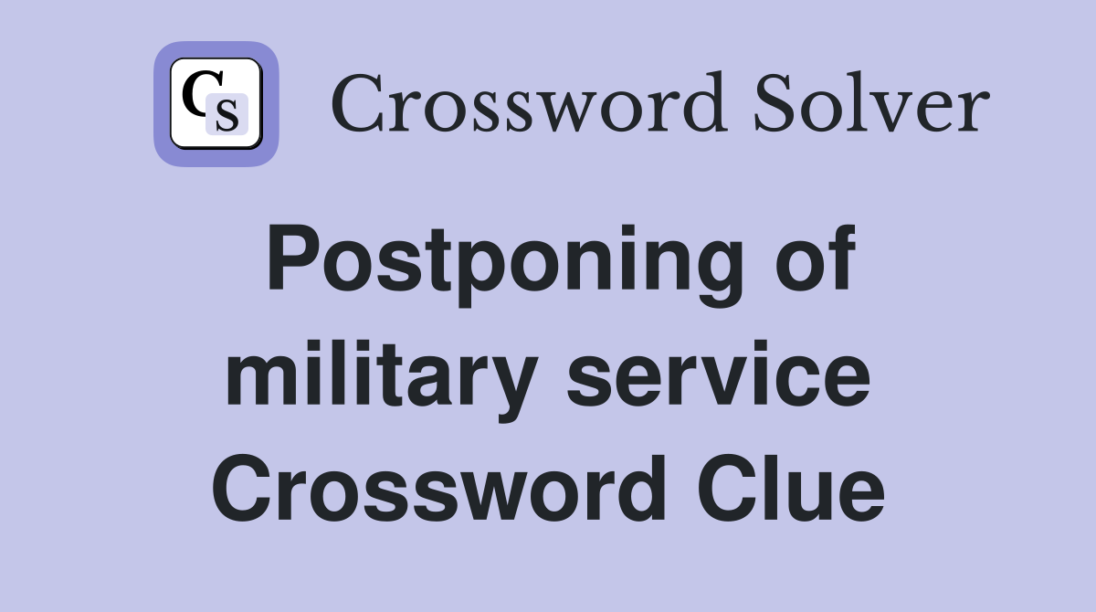 Postponing of military service Crossword Clue Answers Crossword Solver