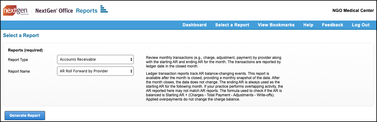 Month End AR Roll Forward Report Help Center