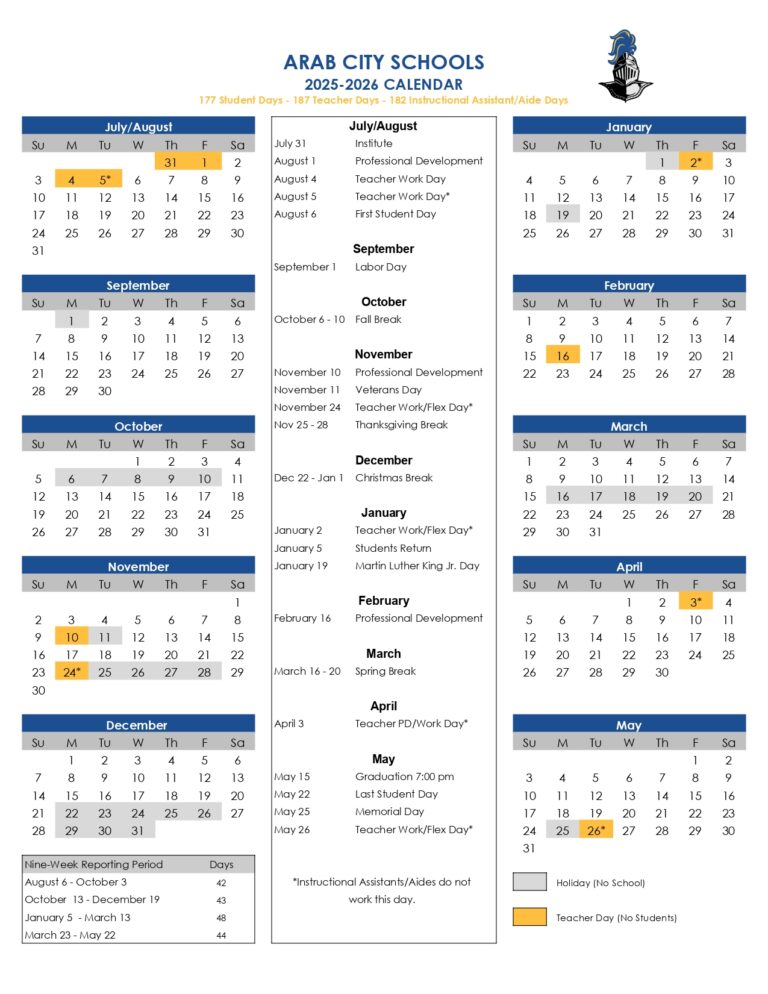 Arab City Schools al Calendar 25 26 Revised PDF EduCounty