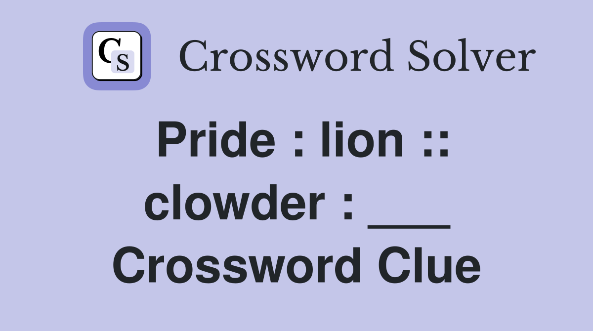 Pride : lion :: clowder : Crossword Clue Answers Crossword Solver