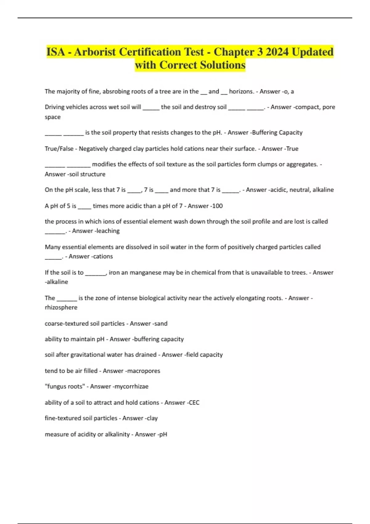 ISA Arborist Certification Chapter 3 Soil Science Exam with Complete