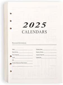 2025 6 Hole Planner Refills A5 Calendar Refill 6 Ring Binder Inserts