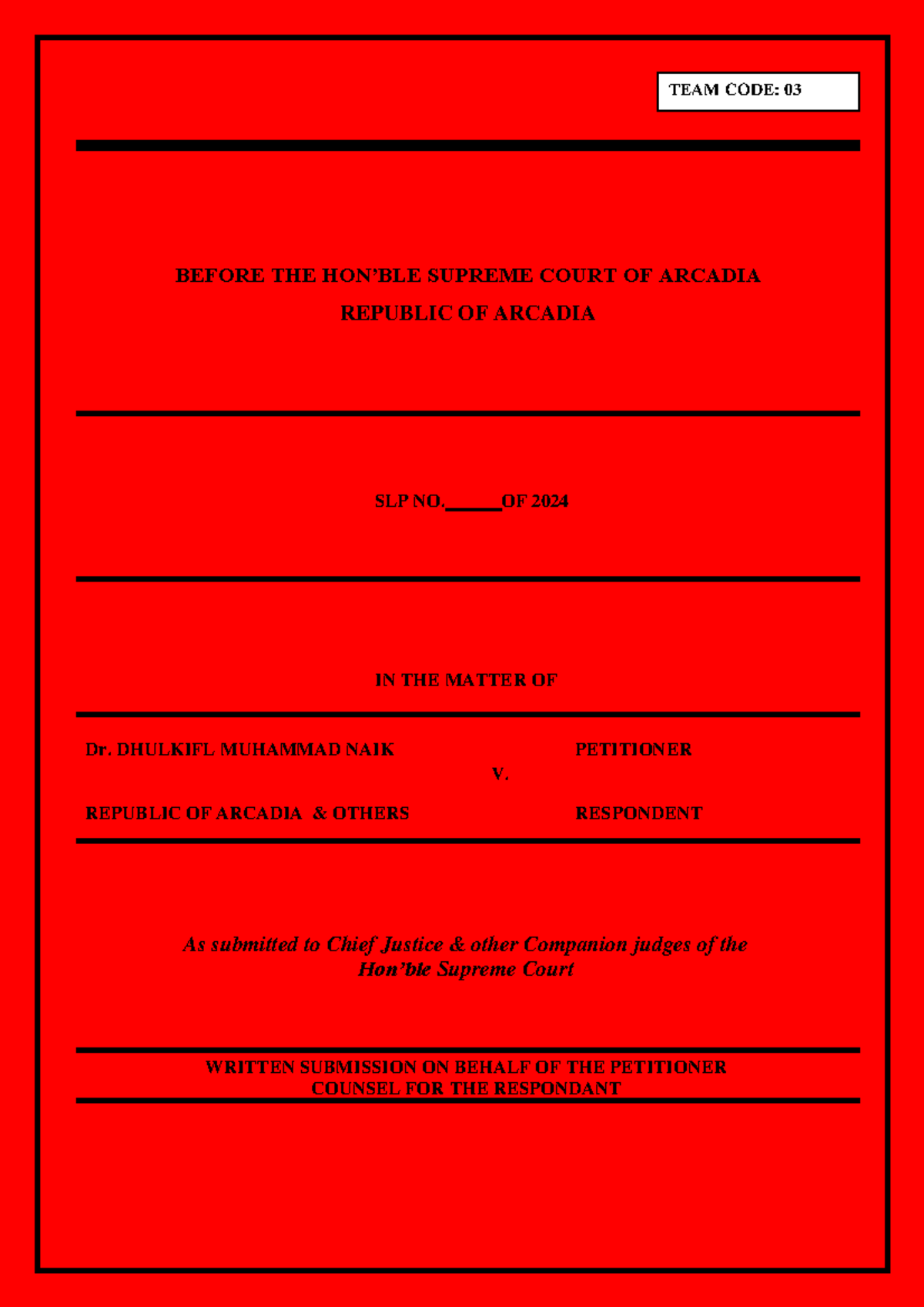 Memo Respondent Team 3 CIA I BEFORE THE HON BLE SUPREME COURT OF