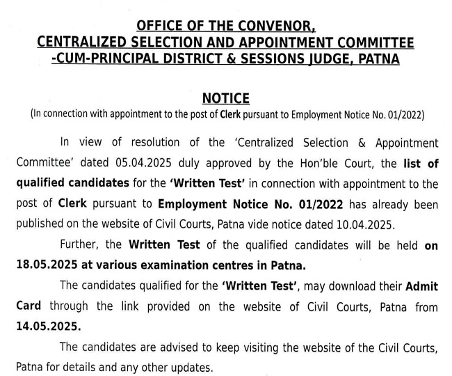 बिहार सिविल कोर्ट क्लर्क मेंस एग्जाम के लिए एडमिट कार्ड जारी यहां से