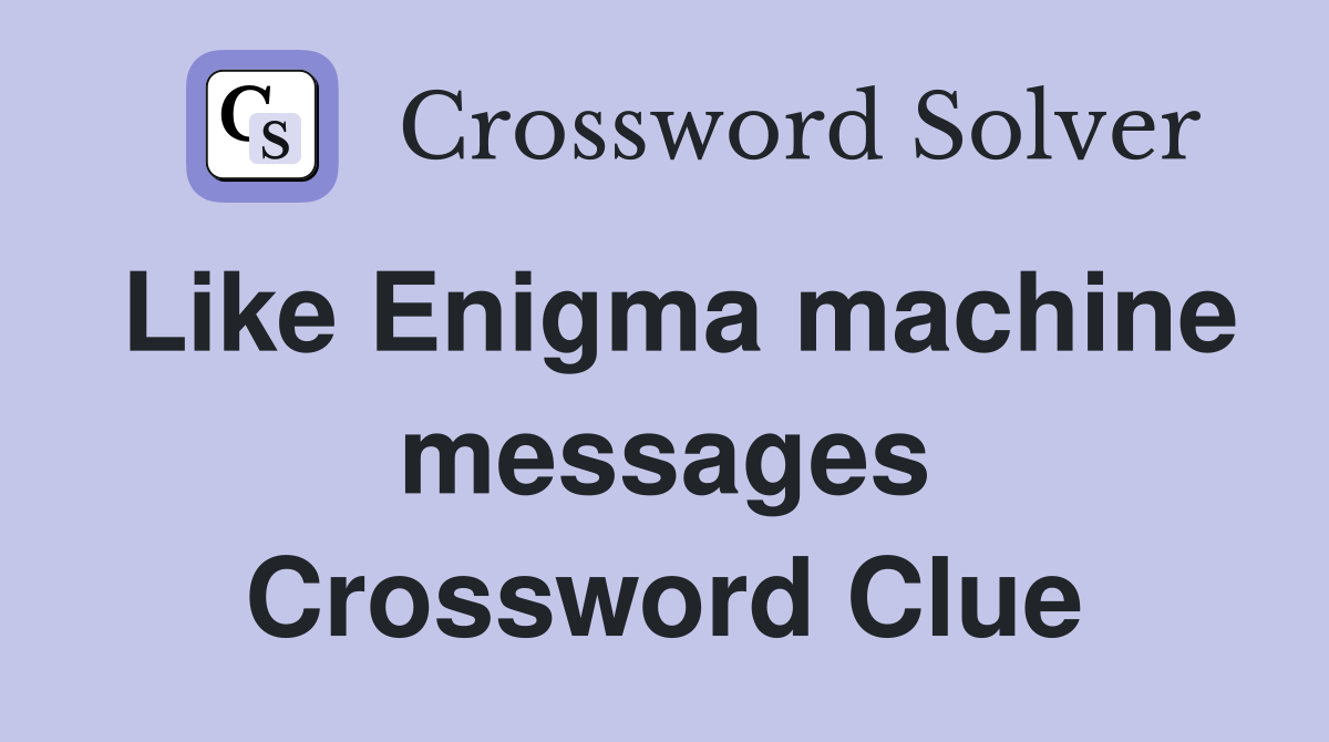 Like Enigma machine messages Crossword Clue Answers Crossword Solver