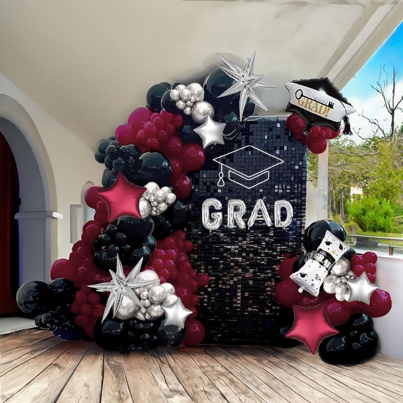 Black Maroon and Silver Balloon Garland Arch Kit 130 Pieces with
