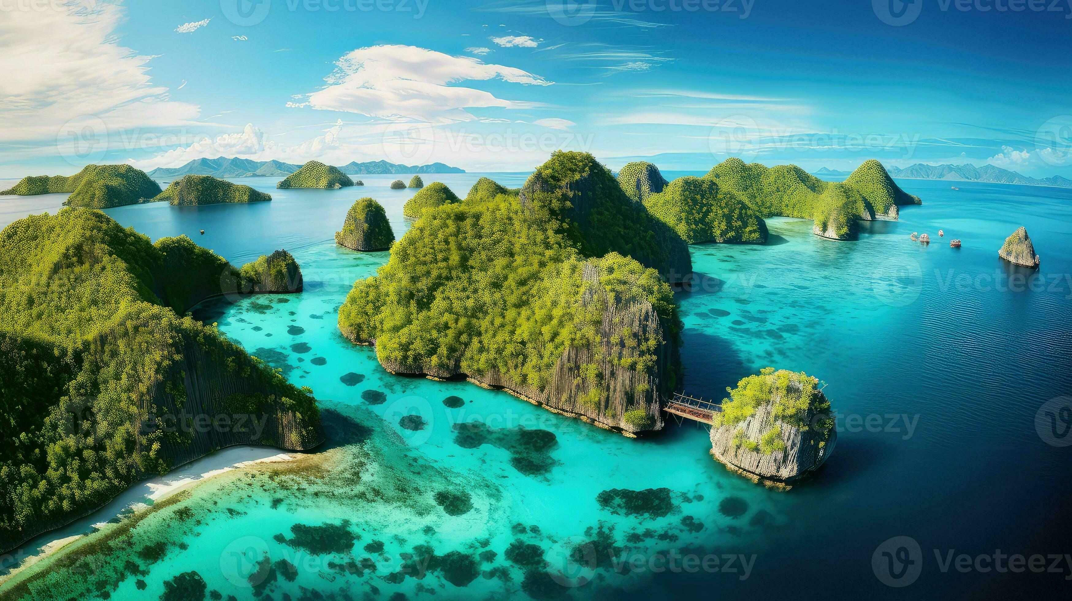 Aerial view of the Fam Islands archipelago Indonesia stock photo OFFSET