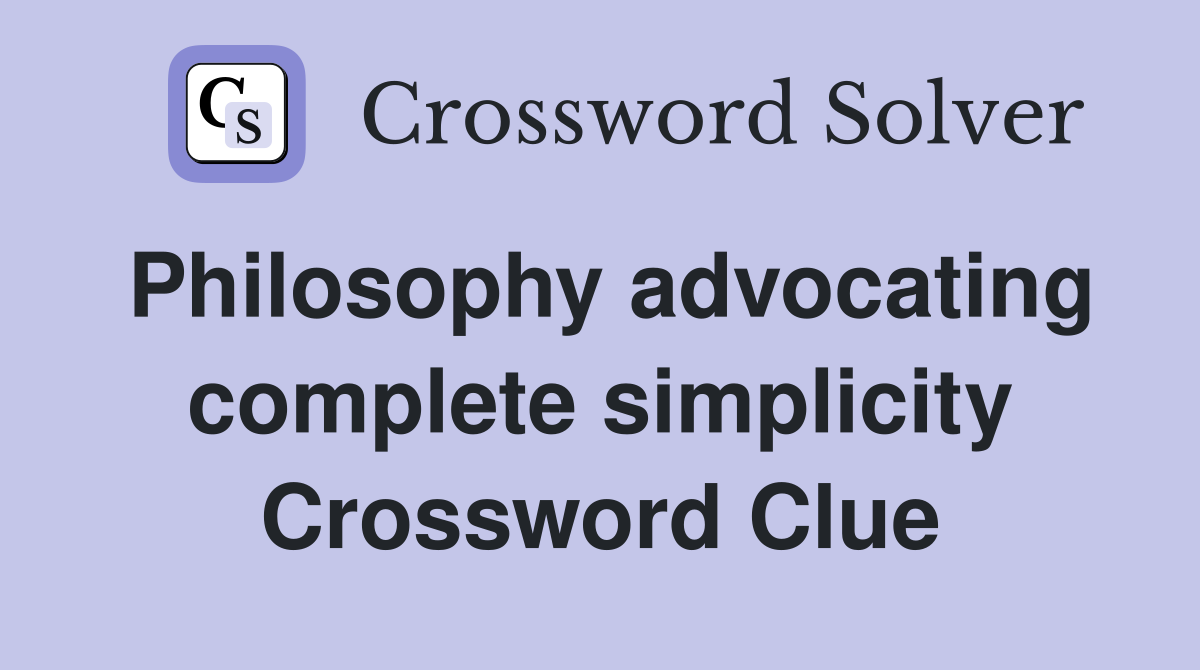 Philosophy advocating complete simplicity Crossword Clue Answers