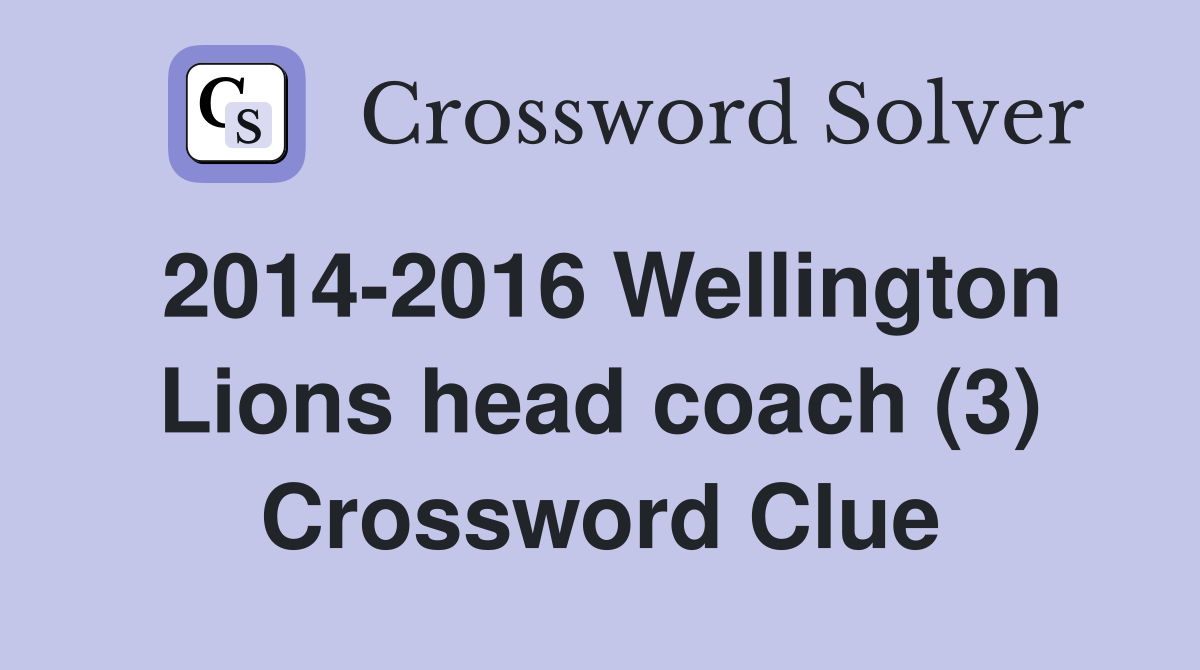 2014 2016 Wellington Lions head coach (3) Crossword Clue Answers