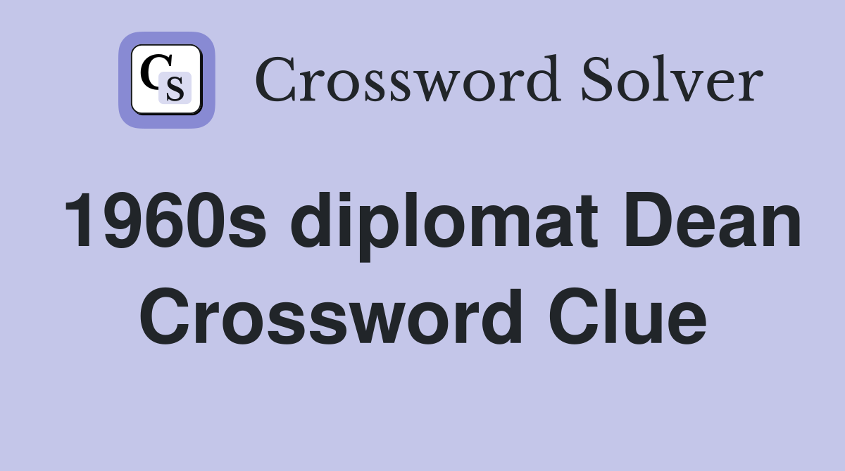 1960s diplomat Dean Crossword Clue Answers Crossword Solver