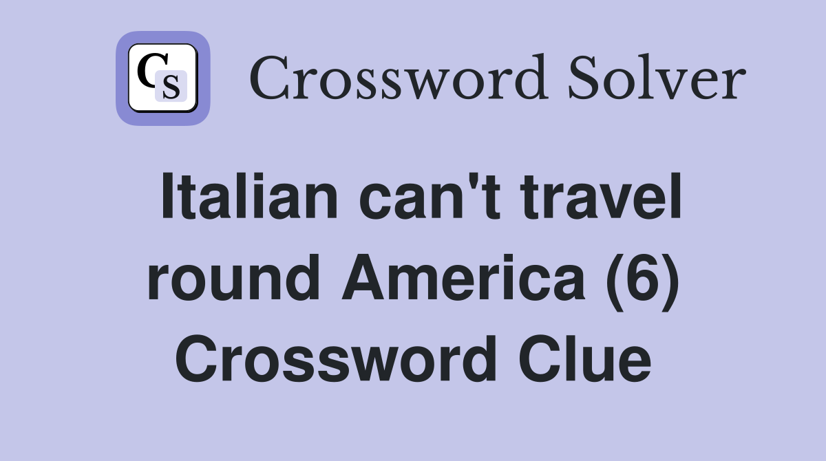 Italian can #39 t travel round America (6) Crossword Clue Answers